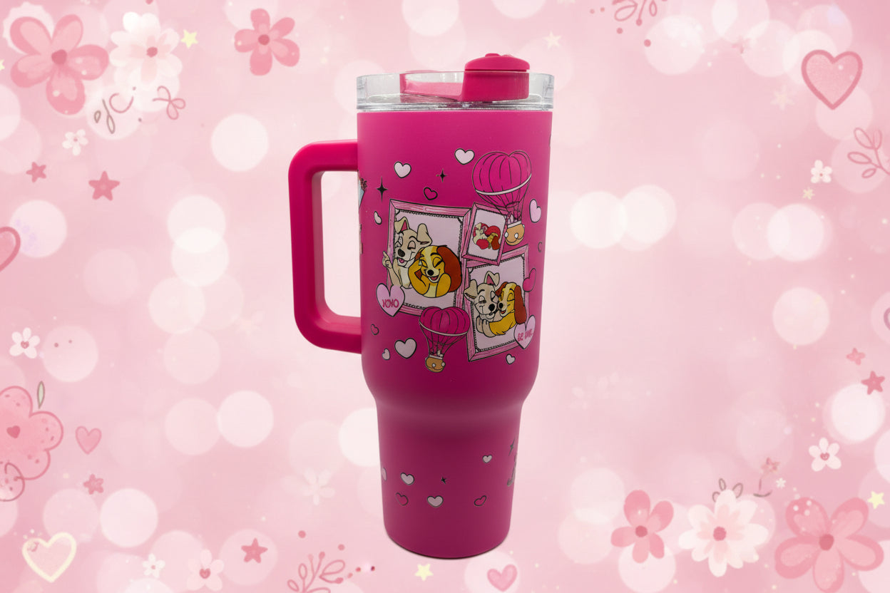 # Lady and the Tramp Valentine 40 oz Tumbler Celebrate romance with this charming 40 oz tumbler inspired by the timeless Disney classic. Perfect for sharing a cozy moment or enjoying your favorite beverage solo, this design captures the magic of that iconic spaghetti scene. The generous capacity keeps drinks at the ideal temperature throughout the day, while the durable construction withstands daily use. Ideal for Valentine's Day gifting or treating yourself to a nostalgic piece that blends pop culture charm with practical functionality. A delightful choice for Disney enthusiasts and romantics alike.